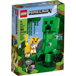 Lego Minecraft BigFig Creeper™ i Ocelot 21156. Creeper™ i ocelot, dwie duże figurki z gry Minecraft™ do zbudowania, pozwolą dzieciom przeżywać przygody z tej popularnej gry wideo w prawdziwym świecie — i to na dużą skalę! Ta zabawka z serii Minecraft zapewni maluchom długie godziny samodzielnej zabawy. Może też służyć jako fajna ozdoba pokoju. Bitwa między Creeperem a ocelotem Dzieci od 7 lat z chęcią odtworzą starcia między Creeperem a ocelotem znane z gry Minecraft. Złożone z klocków figurki są łatwe w montażu i wyglądają świetnie. Figurka Creepera porusza się w autentyczny sposób dzięki ruchomym nogom i obracającej się głowie, a żółty ocelot w cętki może szybko zareagować na atak dzięki ruchomej głowie, nogom i ogonowi. Figurki łatwo ustawić w wybranej pozycji, więc doskonale sprawdzą się jako zabawka i ozdoba. Dużo zabawy z dużymi figurkami Minecraft BigFig Zestawy LEGO® Minecraft BigFig to świetne zestawy do kolekcjonowania, które idealnie nadają się na prezenty świąteczne lub urodzinowe dla dzieci. Zaprojektowane zostały z myślą o swobodnej, kreatywnej zabawie. Dlatego są tak duże — dzięki temu rozrywka też jest większa!