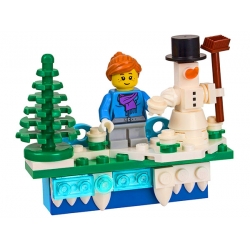 • W zestawie magnetyczna podstawka z klocka LEGO®, a także bałwan i choinka do zbudowania.